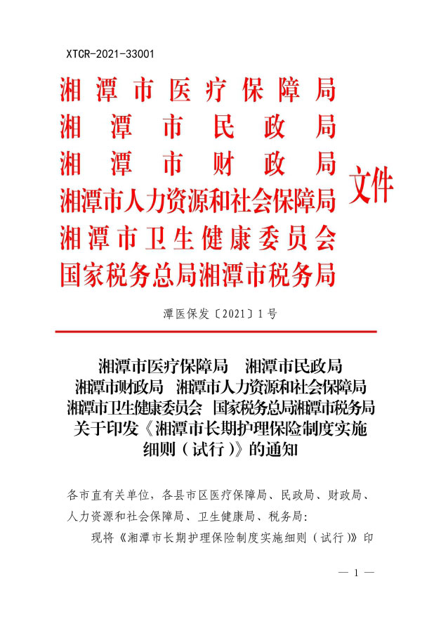 潭醫保發(fā)〔2021〕1號湘潭市長(cháng)期護理保險實(shí)施細則