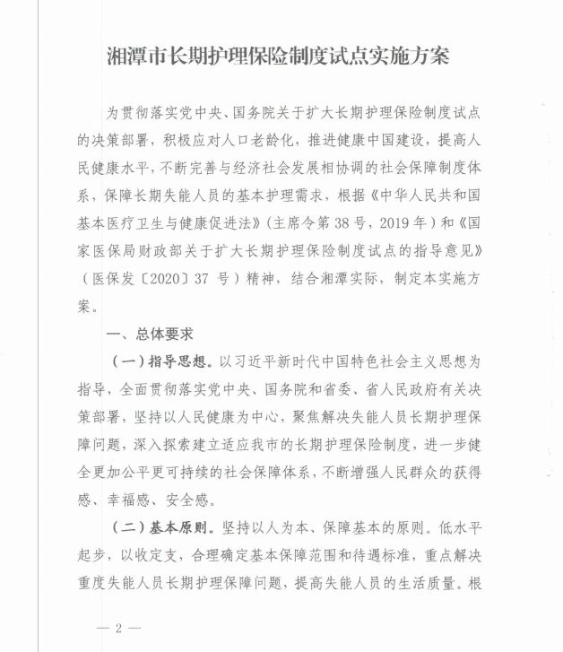 潭政辦發(fā)〔2020〕33號湘潭市人民政府辦公室關(guān)于印發(fā)《湘潭市長(cháng)期護理保險制度試點(diǎn)實(shí)施方案》的通知