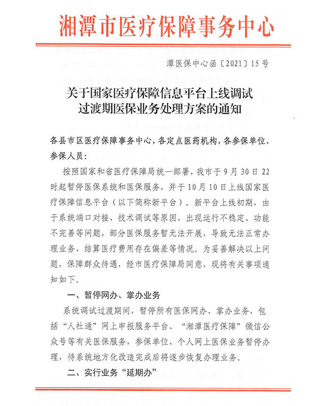 關(guān)于國家醫保平臺上線(xiàn)過(guò)渡期業(yè)務(wù)處理方案的通知