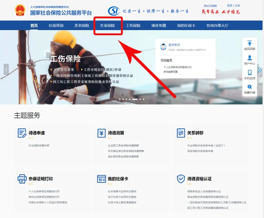 3、登錄“國家社會(huì )保險公共服務(wù)平臺”(http://si.12333.gov.cn),點(diǎn)擊【失業(yè)保險】→【失業(yè)保險待遇申領(lǐng)】→【失業(yè)保險金網(wǎng)上申領(lǐng)】辦理。
